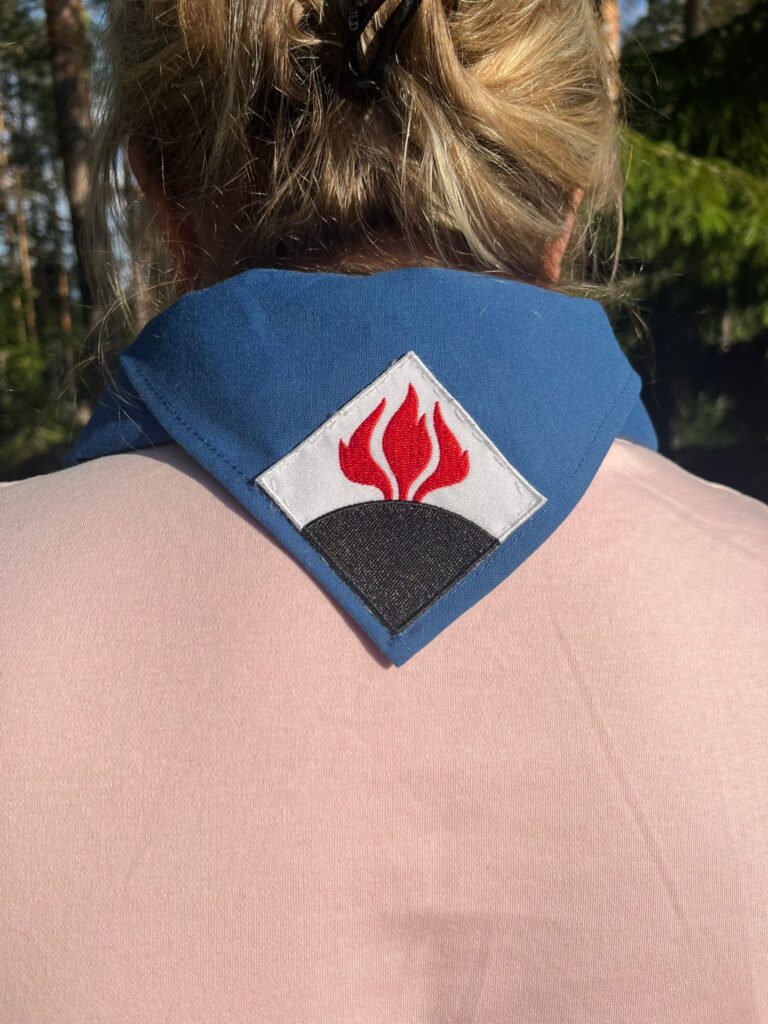 Nastapartion huivimerkki tulee ommella huiviin.
